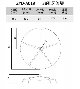 The 38-Hole Toothpick Foot is designed for strength and functionality, featuring 38 precisely spaced holes for enhanced versatility. With an inner hole diameter of 38mm, an overall size of 660mm, and a height of 143mm, it provides a robust foundation for various applications. Weighing 1.6kg, it combines durability with manageable weight, and its sleek design ensures a professional appearance. This component is ideal for setups requiring a balance of stability and adaptability.